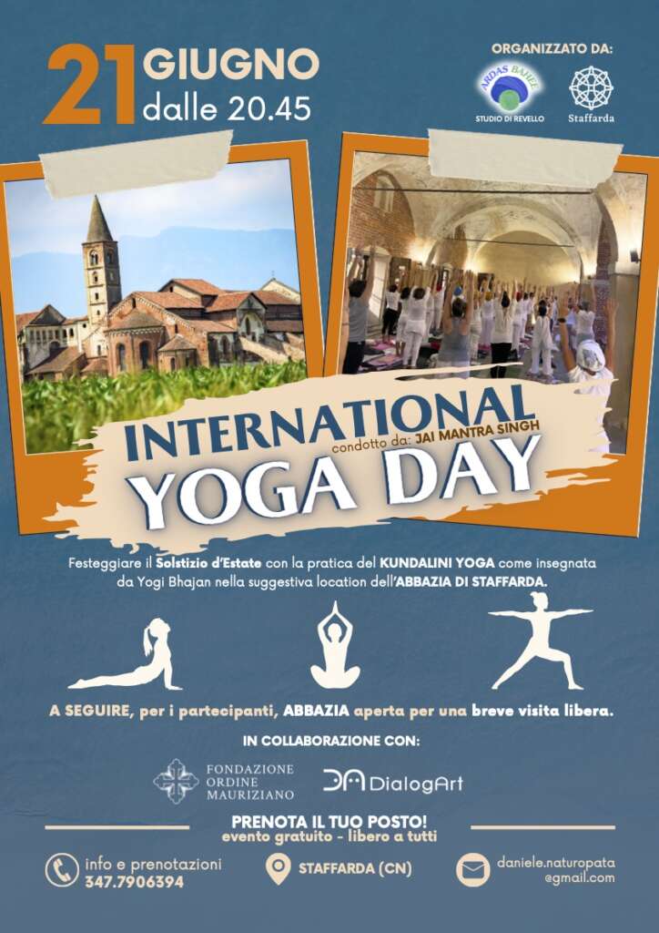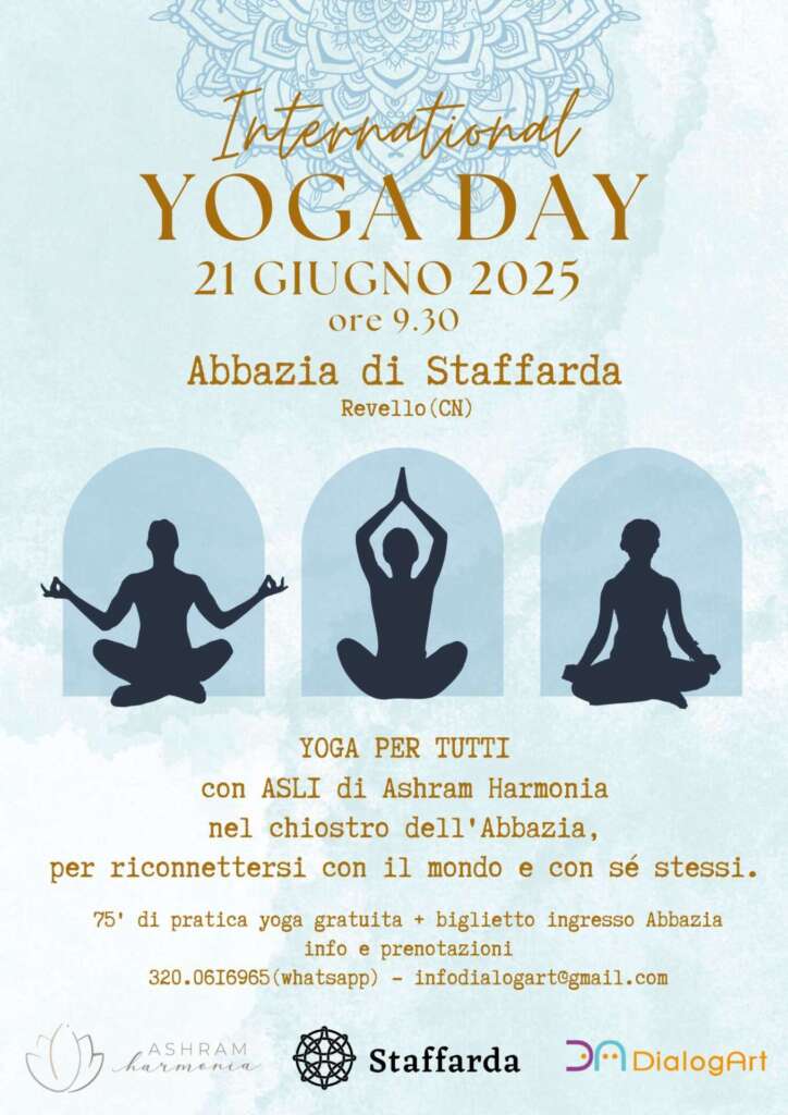 Per celebrare la Giornata Internazionale dello Yoga e il Solstizio d’estate, una pratica di YOGA PER TUTTI immersi nella quiete del chiostro dell’Abbazia di Staffarda.