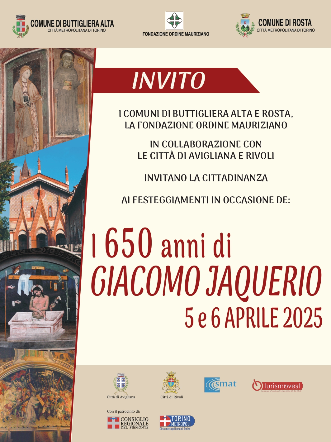 Sabato 5 aprile si terrà la conferenza celebrativa, che si aprirà alle 9,30 con il saluto delle autorità, seguito dagli interventi delle storiche e critiche dell’arte Cristina Scalon e Arabella Cifani, che si soffermeranno sul polo di Ranverso nelle carte dell’Archivio della Fondazione Ordine Mauriziano e sulla rivalutazione della figura di Giacomo Jaquerio. Seguirà l’intervento dell’architetto Luigi Valdemarin sui restauri del complesso monumentale. Alle 15 è in programma un incontro di restituzione e racconto delle esperienze dei servizi educativi della Precettoria. A cura di Serena Fumero. Alle 17 si terrà un concerto del coro degli Alpini di Rosta e della corale “Il bramito” di Bussoleno.